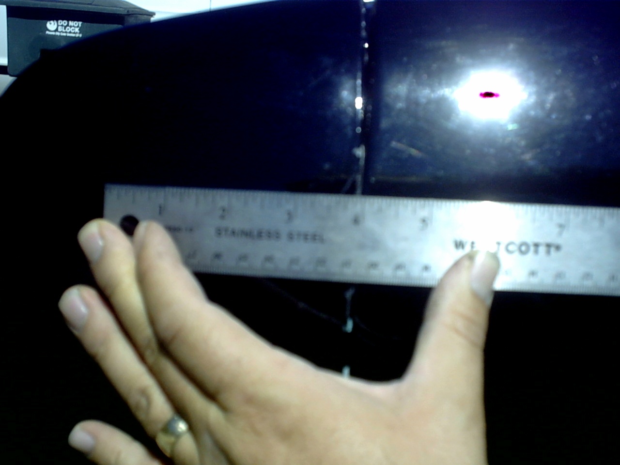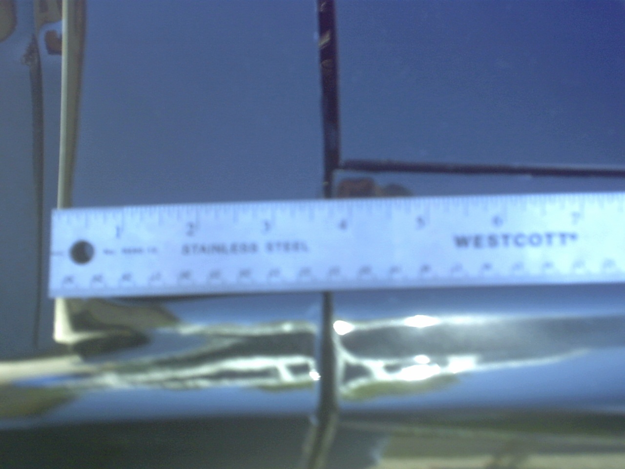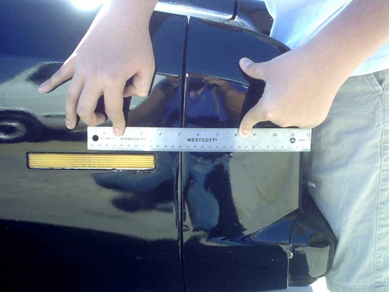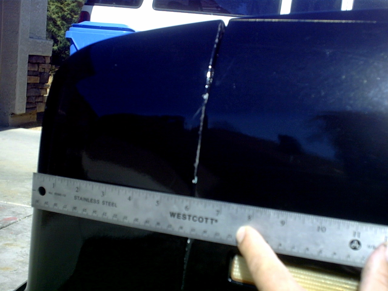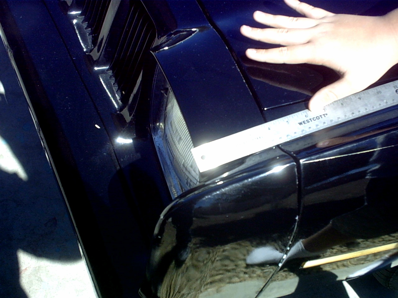 The nose is in great shape, however the person(s) who mounted it did not take the time to properly align it. As such, you will notice that the gap that is supposed to be between the nose and the fenders is much too small, while the gap between the nose and the hood is much too large. This means that the nose mounts need to be loosened to adjust the nose and then tightened back up.